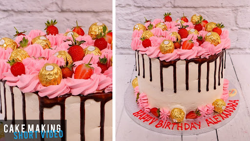 This pink chocolate drip strawberry celebration cake looks amazing and tastes. It is #pretty and elegant looking. Chocolate #dripcake tutoriala #chocolate drip cake is perfect for any occasion. It is so good that seconds are a must.